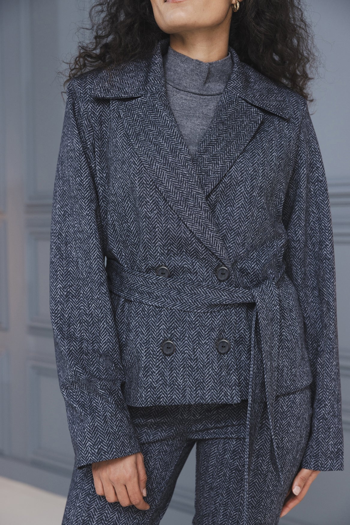 Dit double-breasted damesjasje is een absolute klassieker met een moderne twist. De stevige stretch stof zorgt voor optimaal draagcomfort en geeft het jasje een verfijnde uitstraling, terwijl de bijpassende ceintuur de taille prachtig accentueert voor een vrouwelijk silhouet.