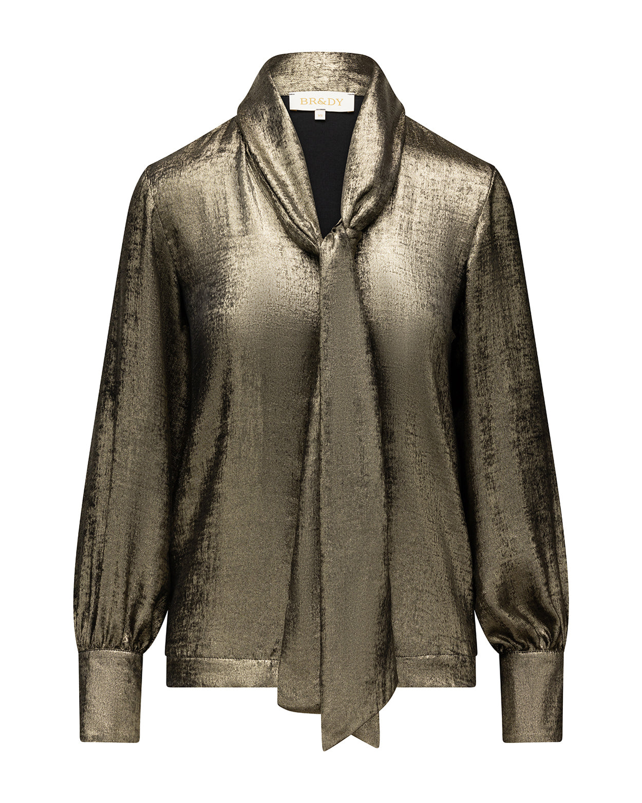 Deze glanzende strikblouse in metallic is de perfecte balans tussen chic en modern. De glanzende, textuurstof vangt het licht op een prachtige manier, terwijl de sjaalkraag en knoopdetails zorgen voor een verfijnde afwerking die zorgen voor een eye catching outfit.