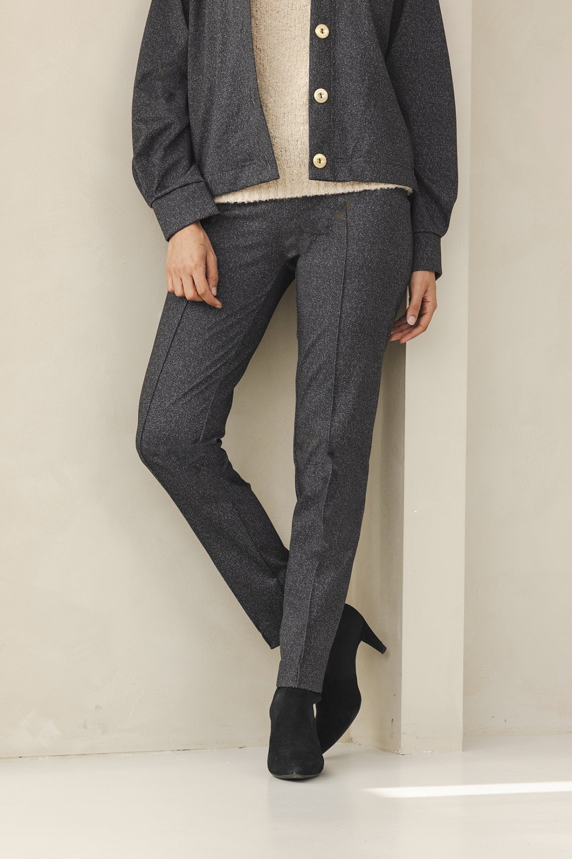 Deze stijlvolle damespantalon combineert verfijning met comfort. De broek is gemaakt van stevige stretch stof en heeft een subtiele print. Het model met aangesloten pasvorm zorgt voor een mooi silhouet.