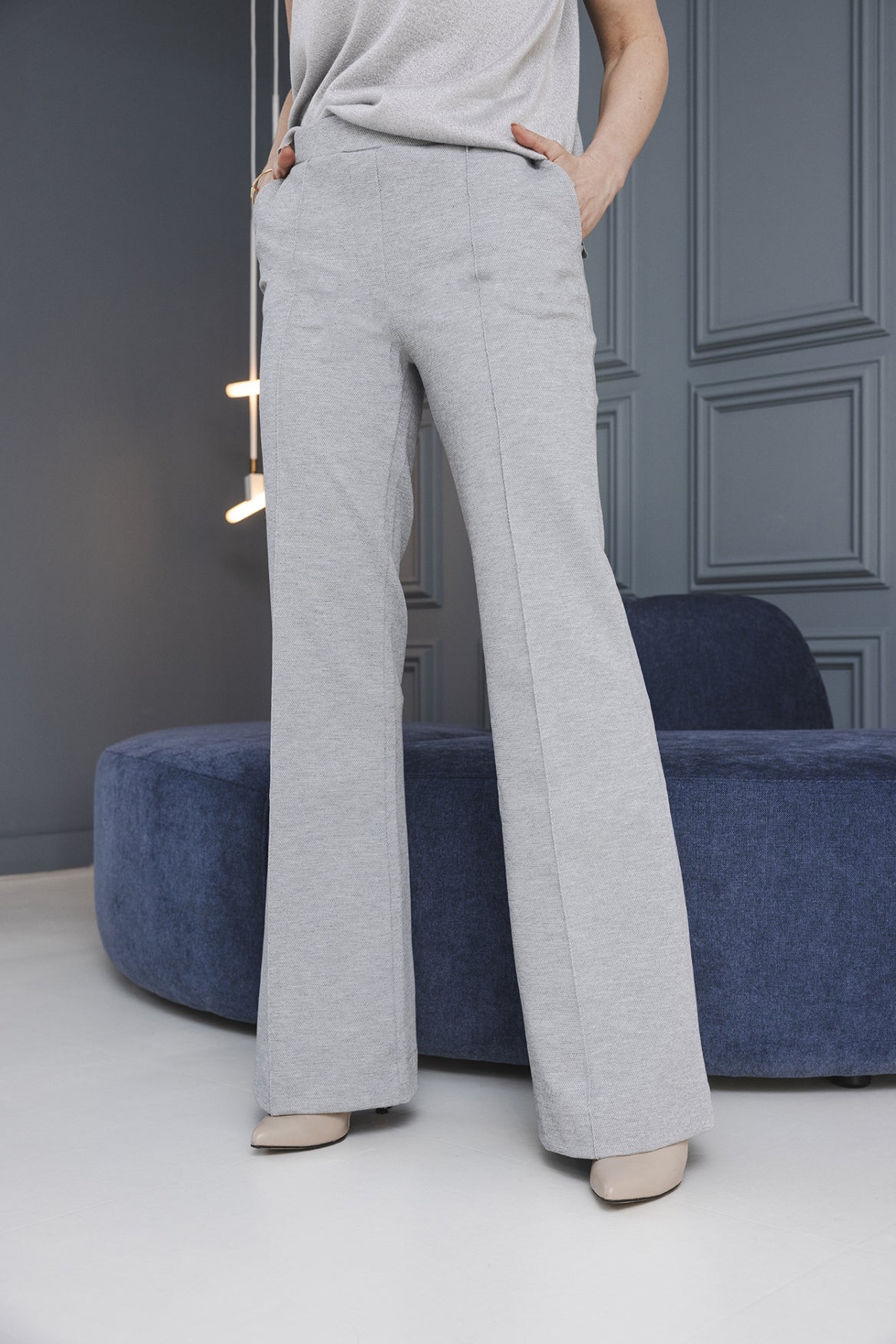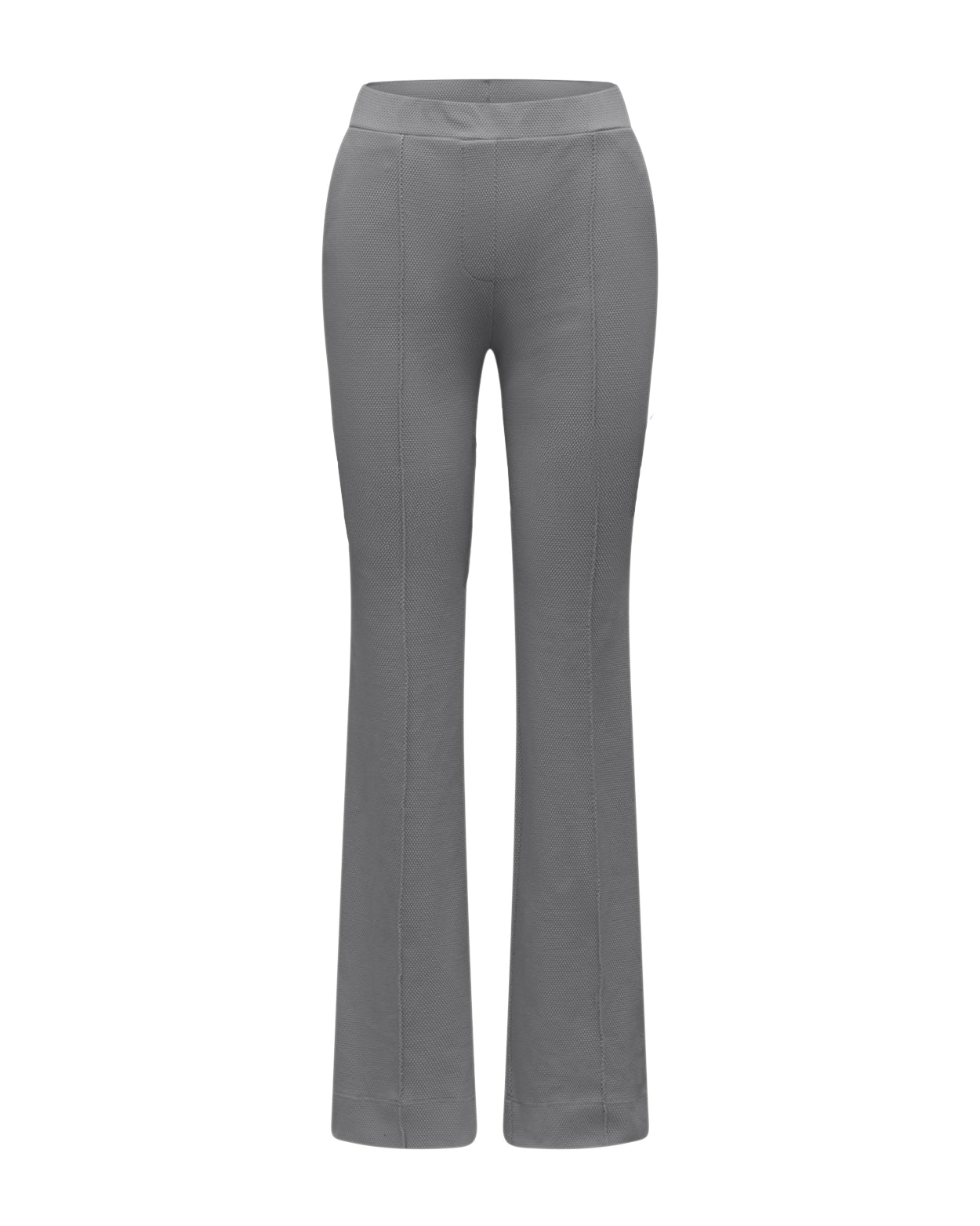 Deze high-waisted damesbroek in een zachte pique stof is het toonbeeld van moderne verfijning. De stof is soepel vallend en de flared pijpen zorgen voor een luchtige, elegante uitstraling en een mooi silhouet.