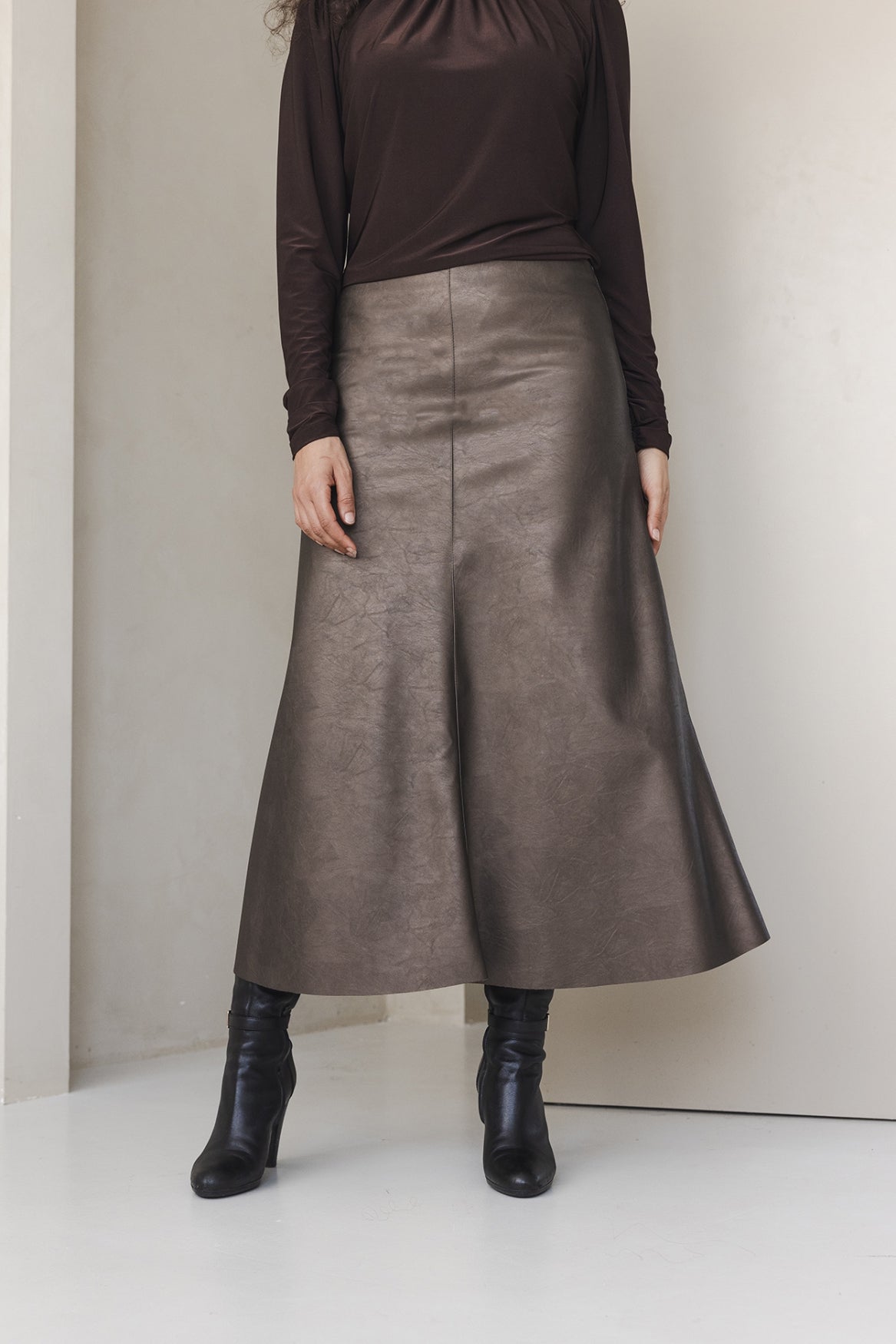 Deze A-lijn rok van vegan leather is dé perfecte mix van stijl en trend. De luxe stof geeft de rok een luxe uitstraling, terwijl de pasvorm en flatterende snit zorgen voor een vrouwelijke en krachtige look.