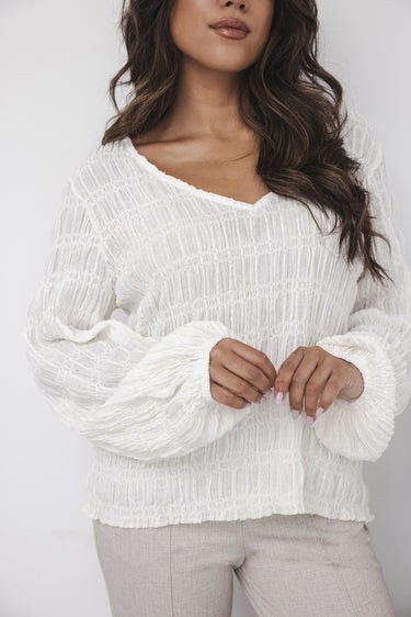 De lange mouwen vallen soepel en creëren een licht volumineus effect, waardoor de top zowel chic als comfortabel aanvoelt. Perfect voor een stijlvolle daglook, maar net zo mooi te dragen tijdens een avondje uit.