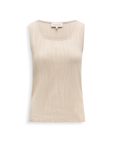 De vierkante halslijn en mouwloze snit creëren een moderne, elegante look, terwijl de soepele pasvorm comfortabel draagt op warme dagen. Perfect om los te dragen of als complete set voor een moeiteloos luxe outfit.