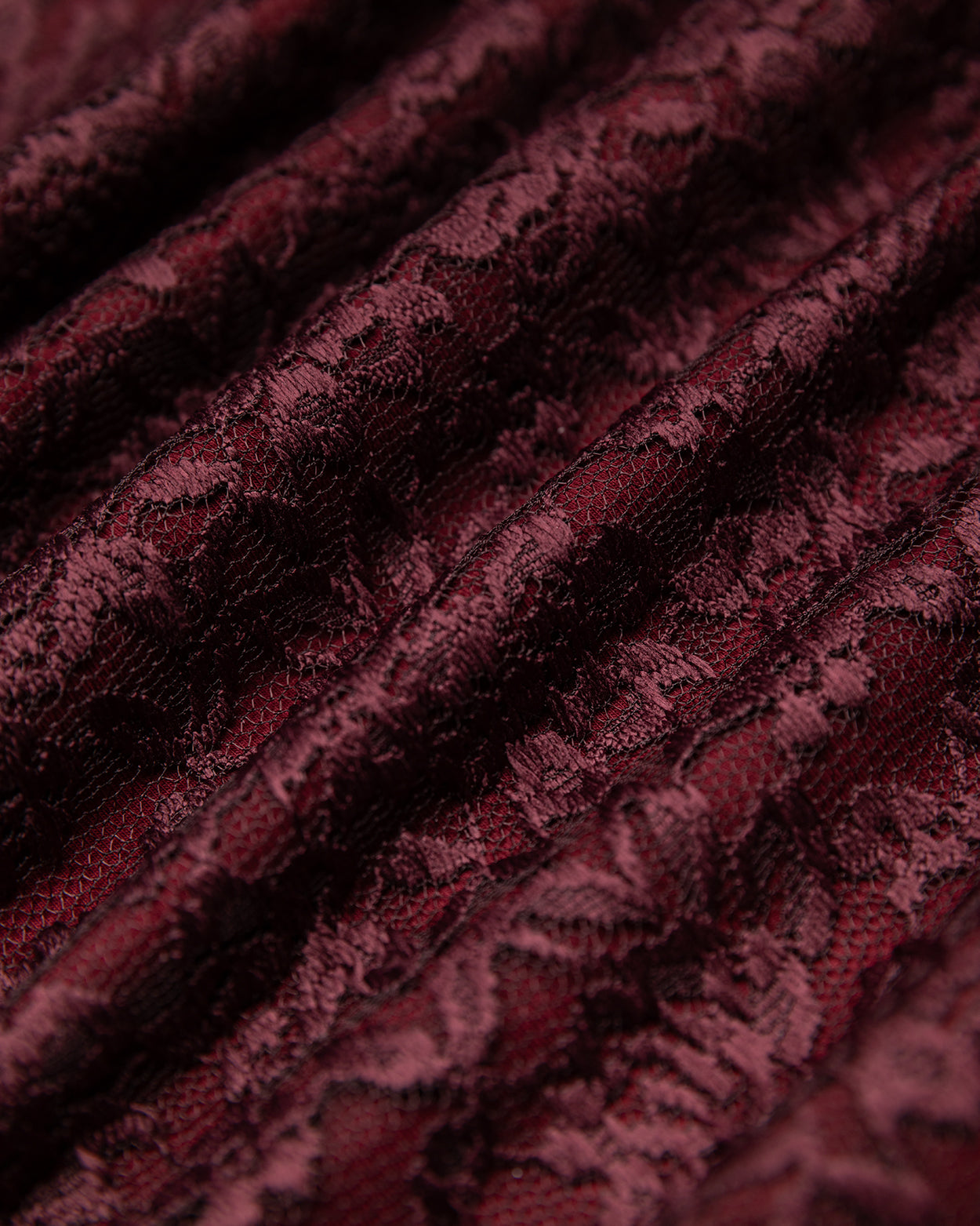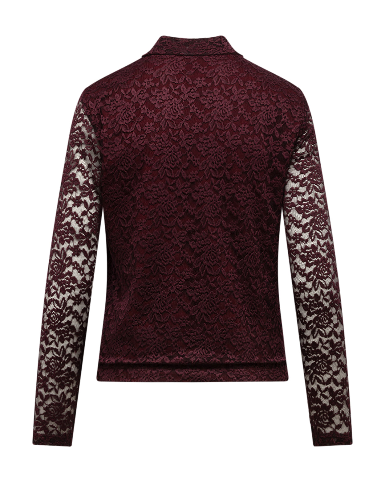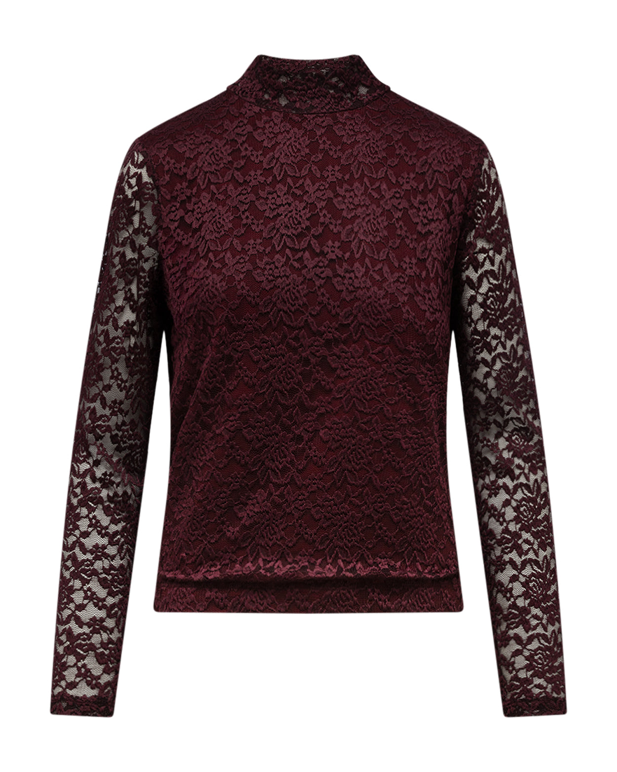 Deze top met kanten bloemenmotief straalt klasse en verfijning uit. Het delicate kant met prachtig bloemendetail creëert een luchtige en elegante uitstraling, terwijl de hoge hals en lange mouwen de top een chic en modern silhouet geven. Het voor- en achterpand van de top zijn gevoerd terwijl de mouwen het kant mooi op de huid laten zien.
